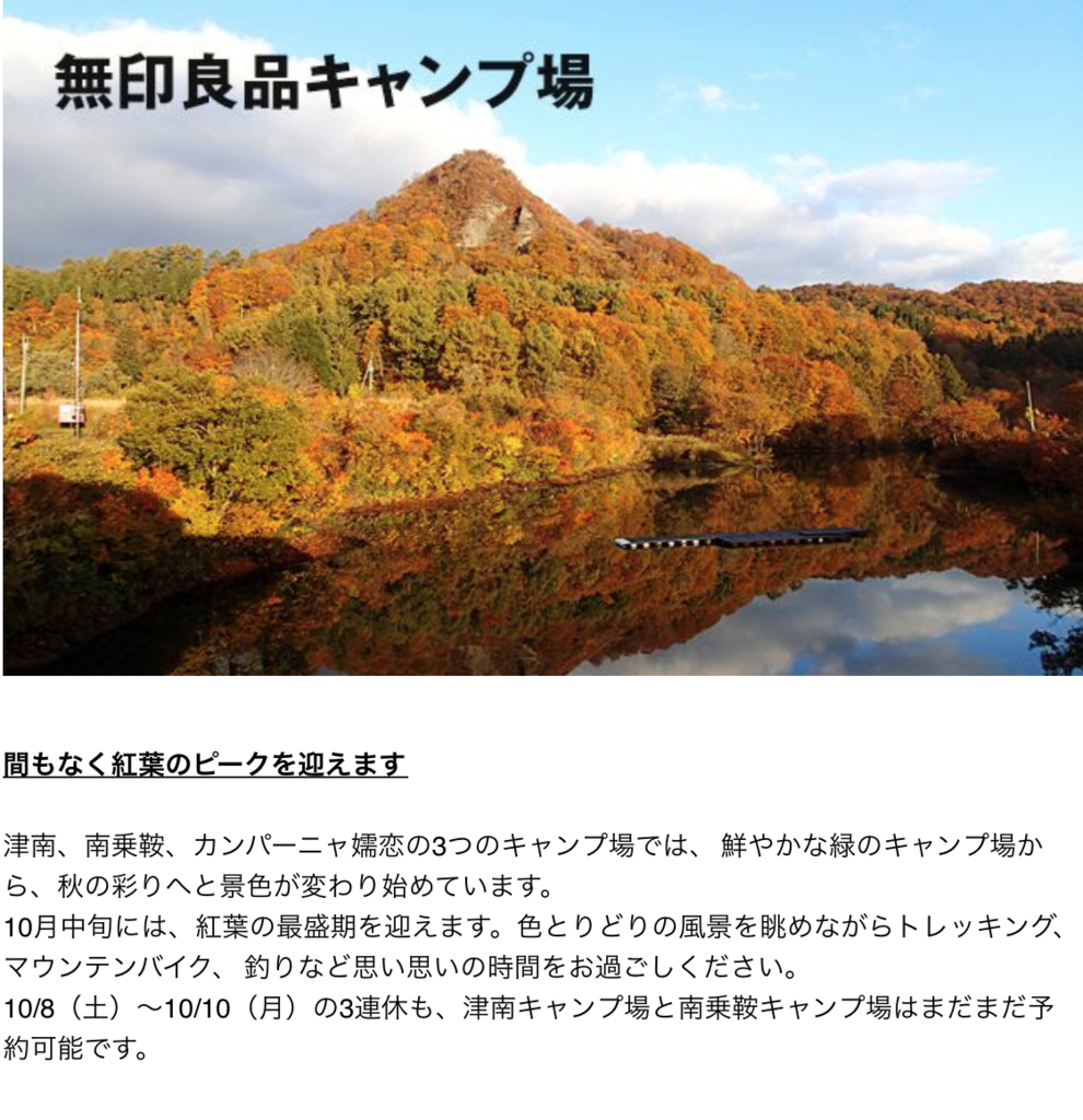 無印から届いたメルマガに「間もなく紅葉のピークをむかえる」という文面があり、